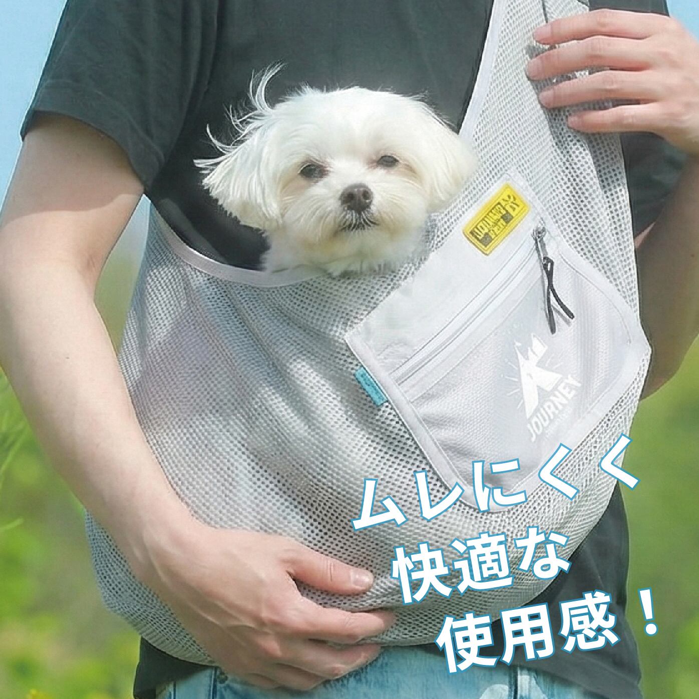 ・暑い季節でのご利用でも、ご利用者もワンコも涼しくムレなく快適にお使いいただける丈夫で軽量なメッシュ素材のドッグスリング。