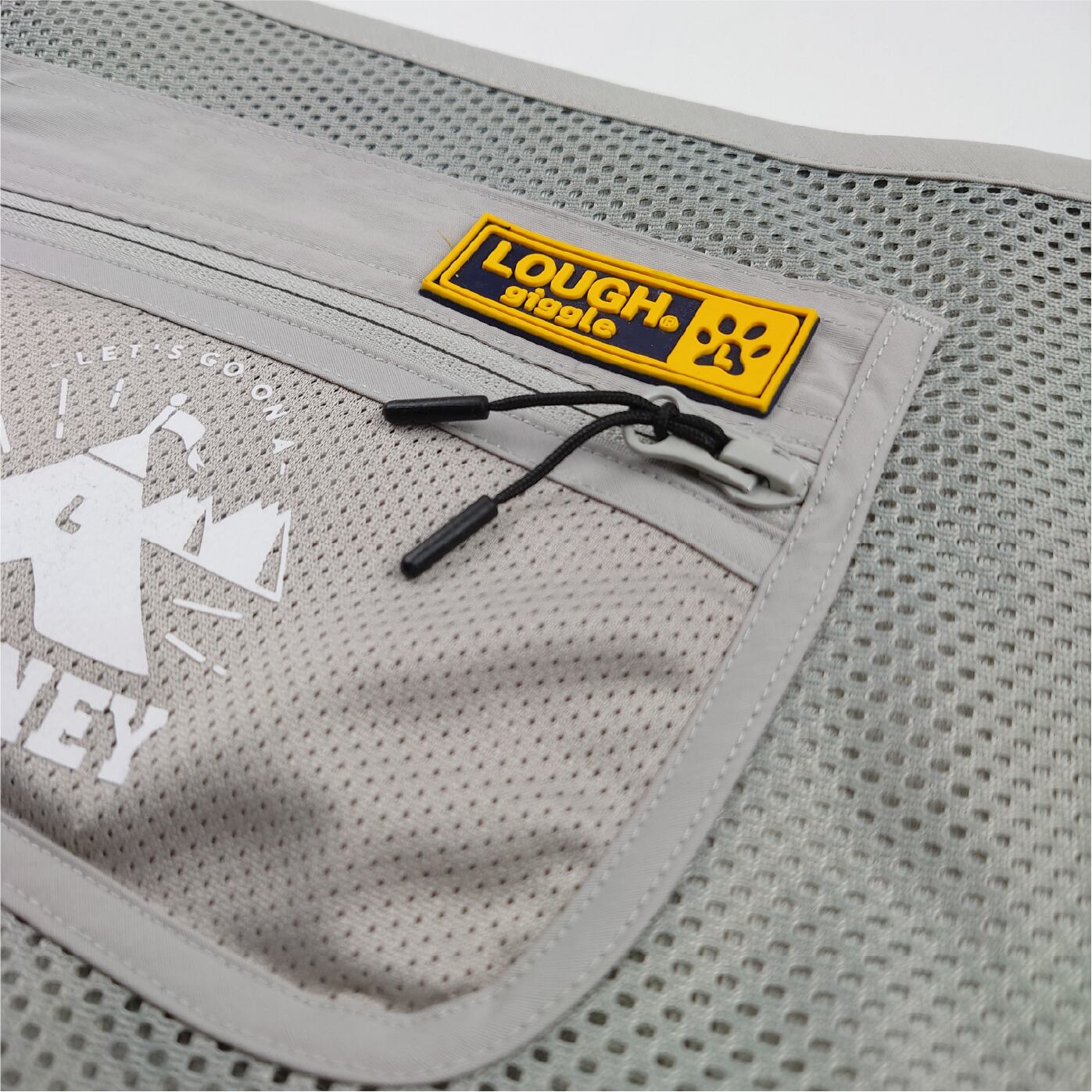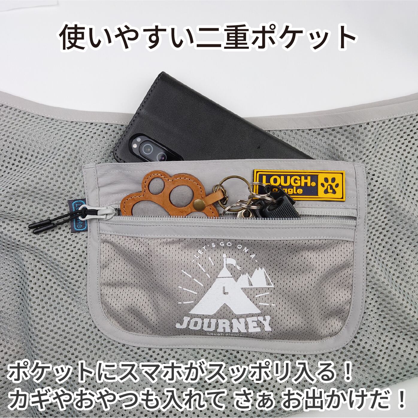 ・使い勝手の良い大きめの2重ポケット付きで、お散歩道具やおやつやカギ等の小物を収納できます。そのポケットにさりげなく際立つ、ブランドマークの立体シリコンワッペンとテント柄のプリントがアクセント。