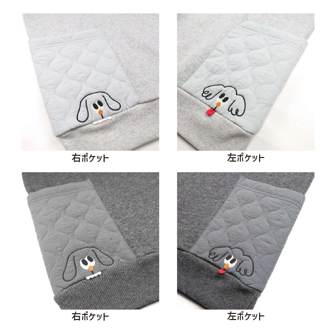 ●注目ポイントは、左右に付いた大きめの脇ポケット。異素材のキルティング生地を使用し、それぞれに“ジッパーくん”の遊び心あふれるギミックモチーフをプラス。普段のコーディネートに楽しいスパイスを添えてくれます。