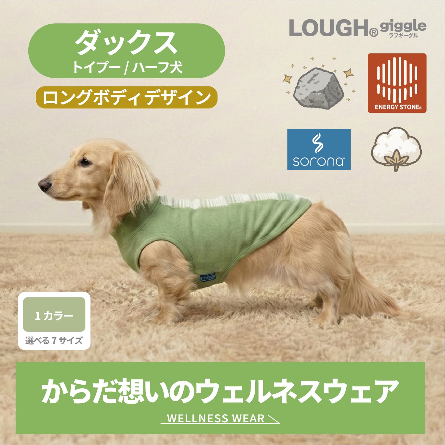 からだ想いのウェルネス・ドッグウェア(ダックス/ロングボディモデル)/エナジーストーン機能素材
