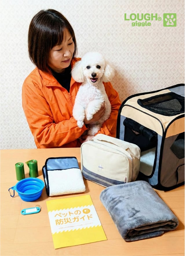 災害時、大切な愛犬を守るために必要なアイテムを厳選した「ラフの愛犬防災7点セット」