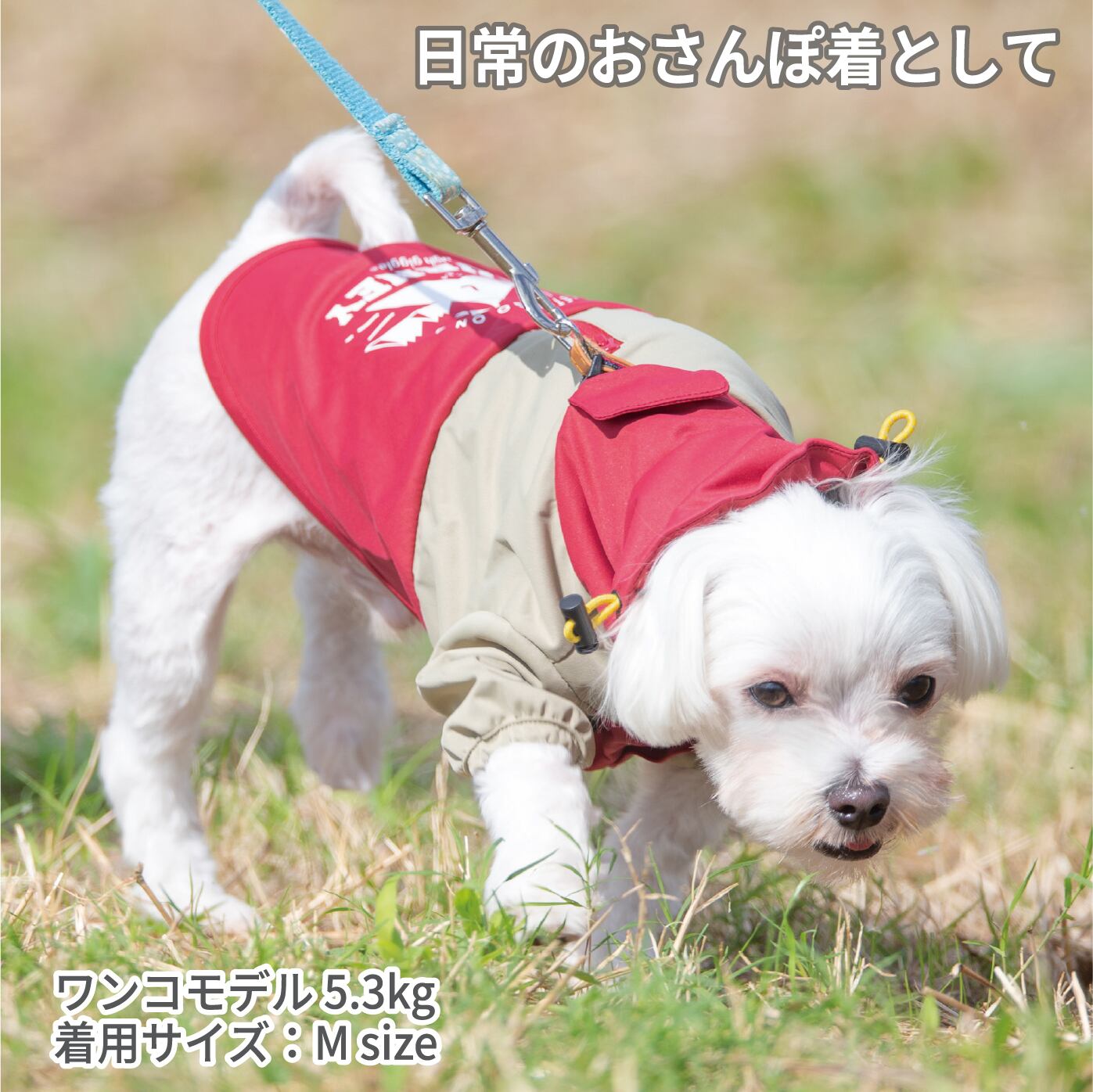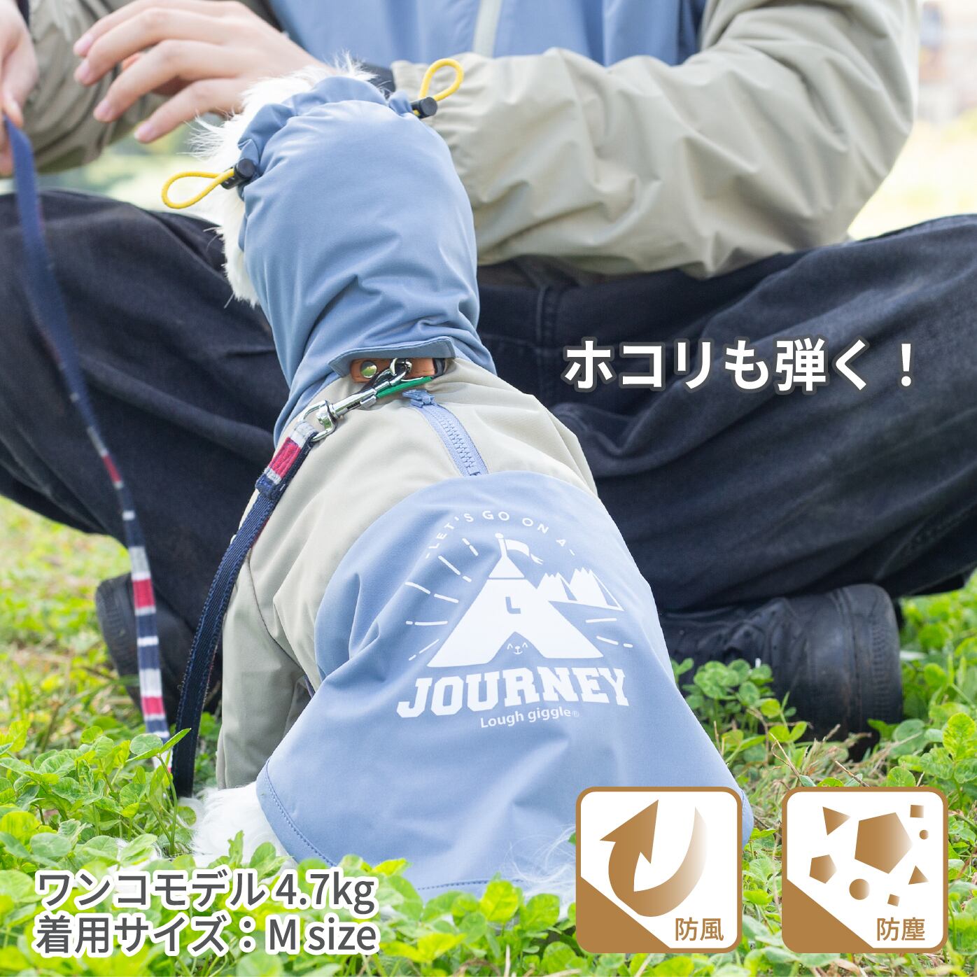 雨にも汚れにも強く、普段着としてお使いいただきながら、アウトドアやドッグラン等でのお出掛け着としても重宝します。